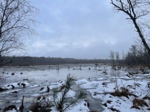 Am Dienstag, den 20.01.2026 hat die Klasse 6a eine spannende Exkursion in den Duvenstedter Brook unternommen und dort unter Anleitung des NABU einen praktischen Beitrag zum Schutz der Natur in Hamburg geleistet. Der Duvenstedter Brook ist ein vielfältiges Naturschutzgebiet am Rande Hamburgs. Hier wechseln sich Heide- und Moorlandschaften mit Bächen und Bruchwäldern ab. Die 6a erhielt einen Einblick in die typische Gestalt von Mooren und durfte dann selbst Hand anlegen. Bei „gemütlichen“ -4 Grad und auf gefrorenen Böden wurde allen Beteiligten dennoch warm als es daran ging das Moor zu „entkusseln“, das heißt unerwünschten Baumaufwuchs zu entfernen. Von Hand, mit Spaten und mit Astscheren rückten die Schülerinnen und Schüler den kleinen Fichten zuleibe, die das Moor beschatten würden.