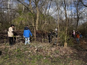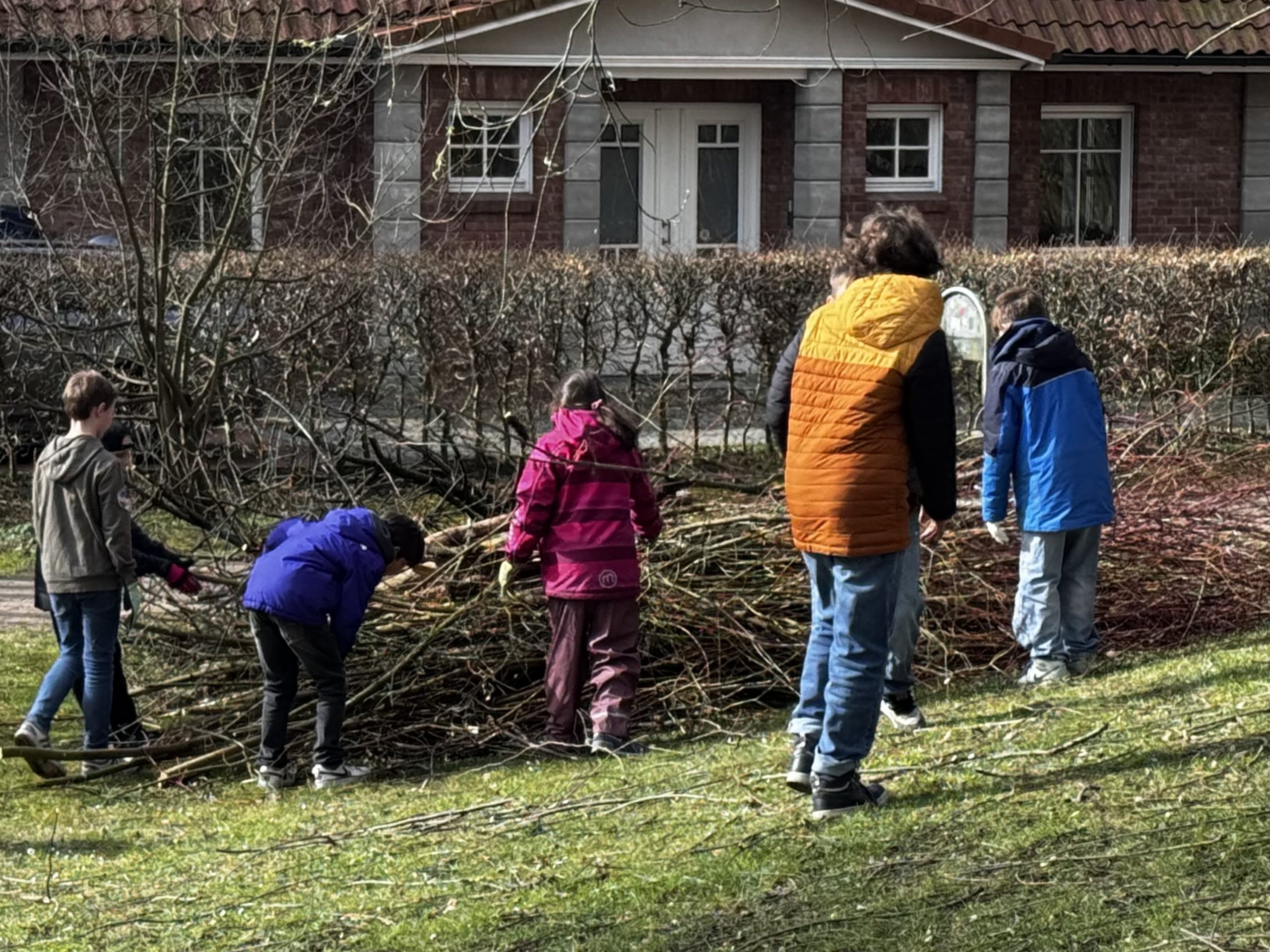 Am 27. März stand für die Projektklassen 5, 6 und 7 kein gewöhnlicher Unterricht an: Es ging zum Spielplatz Grootmoor, um die dortige Benjeshecke weiterzuführen. Seit nunmehr sechs Jahren wird dieser Naturschutzwall kontinuierlich gepflegt und ergänzt.